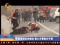 实拍车祸现场司机重伤倒地 暖心交警脱衣守护