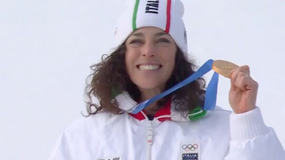 拉烟庆祝!意大利选手主场夺金,冬奥赛场颁奖仪式前上演飞行表演!