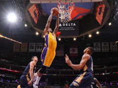 鹈鹕vs湖人第2节 犀利哥单手迎人劈扣24:24