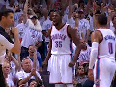第1节 04'33 威少连续试探突然启动 强行上篮硬打邓肯2+10:43